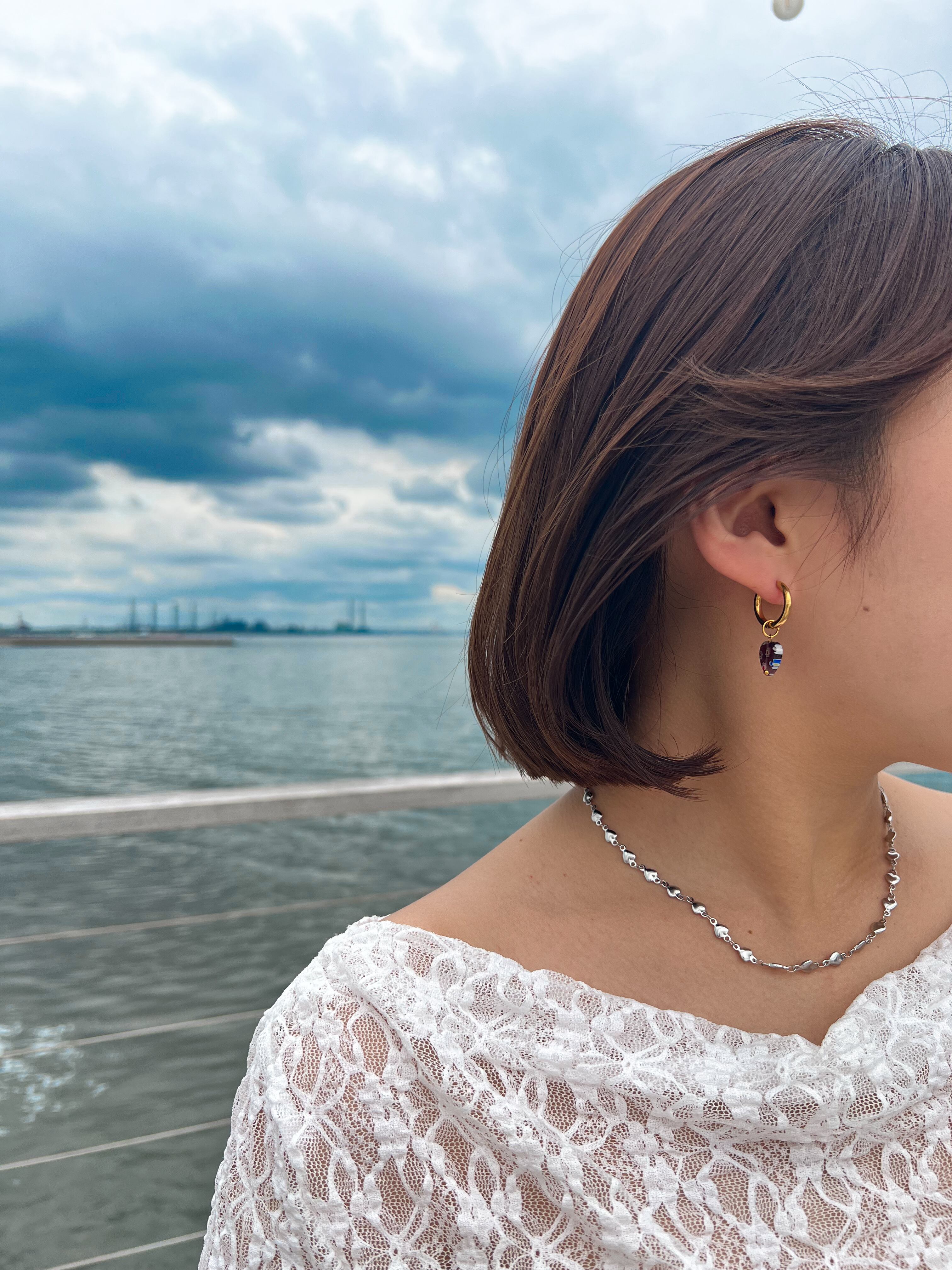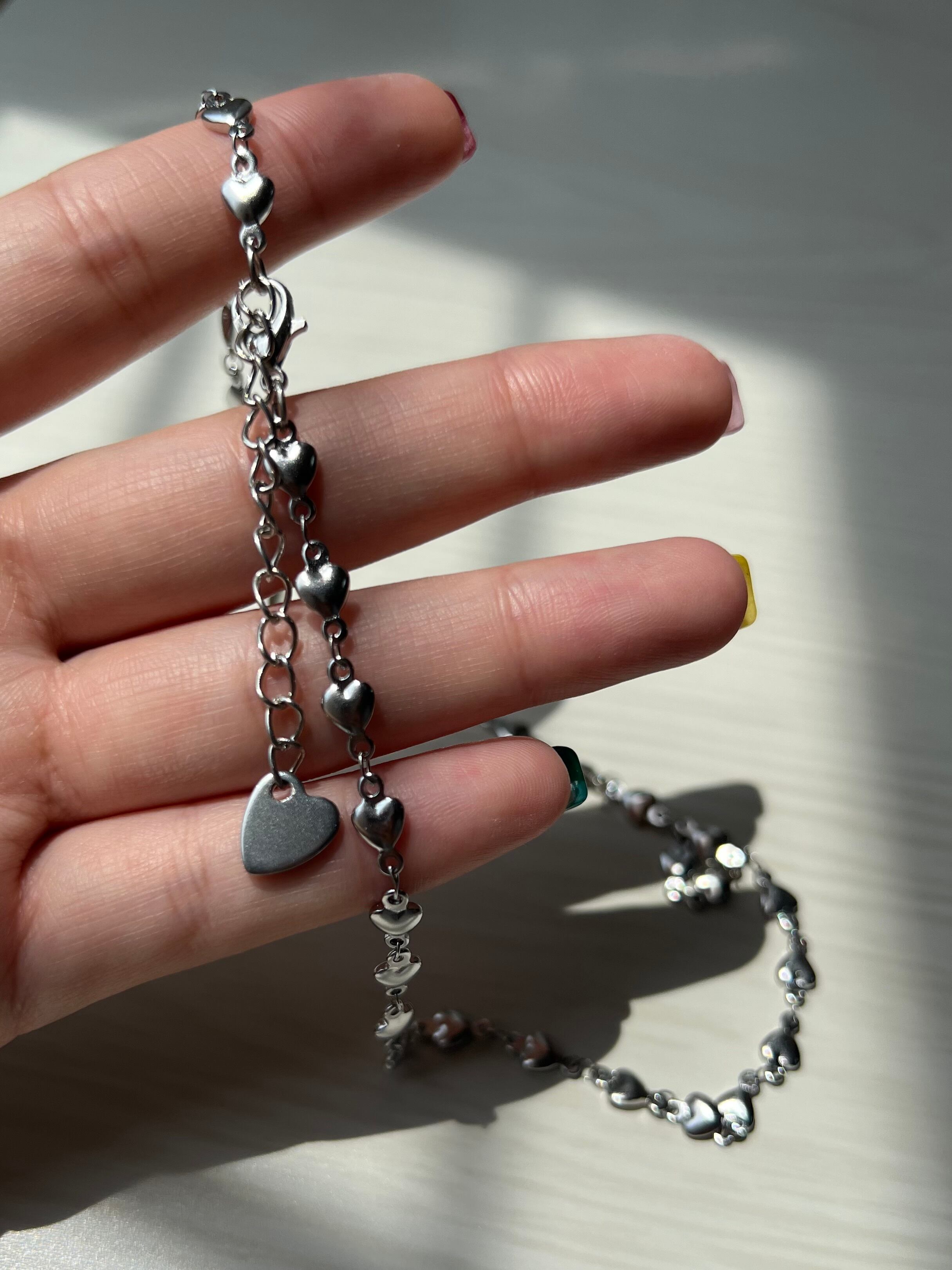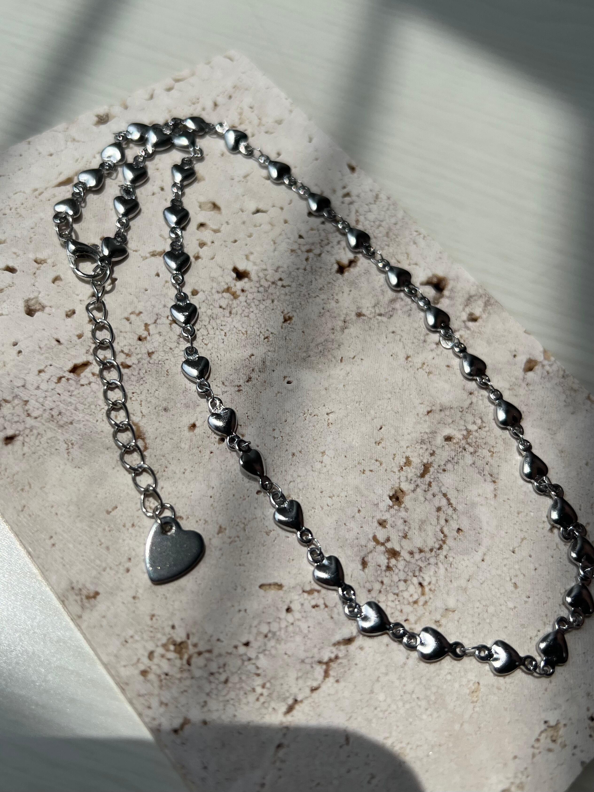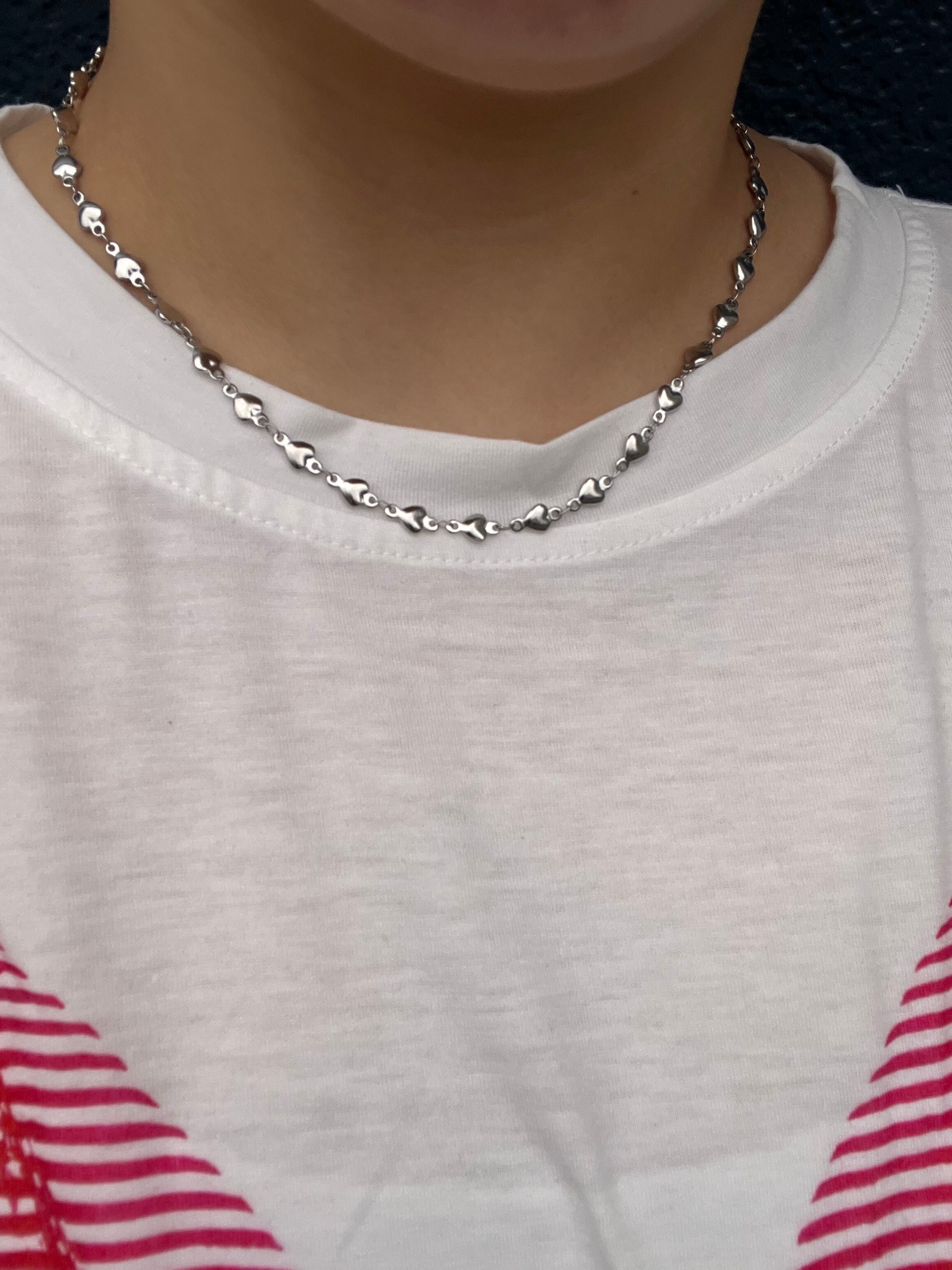 小さなハートが連なる甘すぎないシルバーチェーンネックレス。